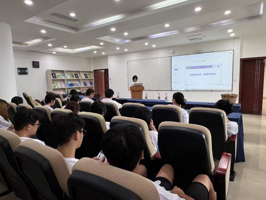 首先,文锶老师以“融入新环境,安心新家园”为主题,通过图文并茂的展示,亲切细致地介绍了校园各类功能区域。她从同学们日常学习生活动线出发,不仅清晰说明了教学楼、实验室、图书馆等学习场所的位置和开放时间,也贴心提示了寝室设施使用规范、食堂特色窗口、校医院就诊流程以及菜鸟驿站取件注意事项等重要信息。通过这些细致入微的介绍,同学们对未来的学习生活环境建立了直观认知,也从方方面面感受到了公司的人文关怀。