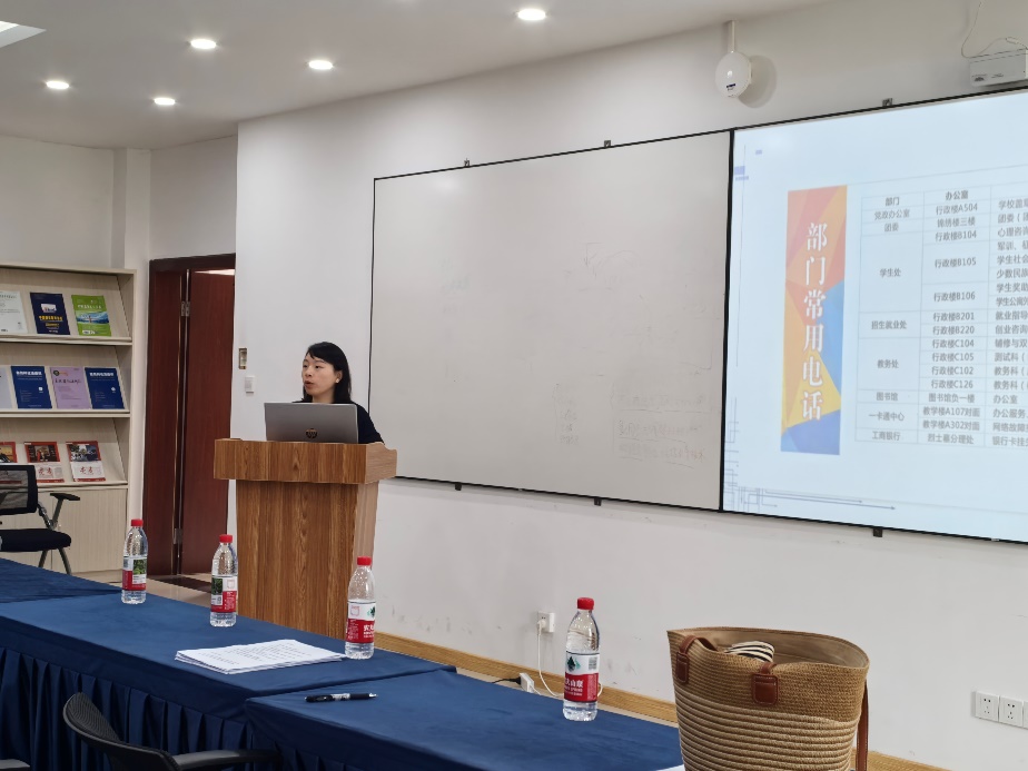 紧接着,文锶老师就日常行为规范展开了详细说明,系统讲解了课堂考勤、请假审批等制度流程。她特别强调了遵守校纪校规的根本重要性,语重心长地指出,“守纪安寝、守时上课、守信治学”不仅是对员工的基本要求,更是成人成才的根本保障。她鼓励大家从入学第一天起,就培养良好的作息习惯,塑造严谨自律的治学态度和诚信真实的学术品格,共同营造一个安全、和谐、积极向上的学习与生活共同体。