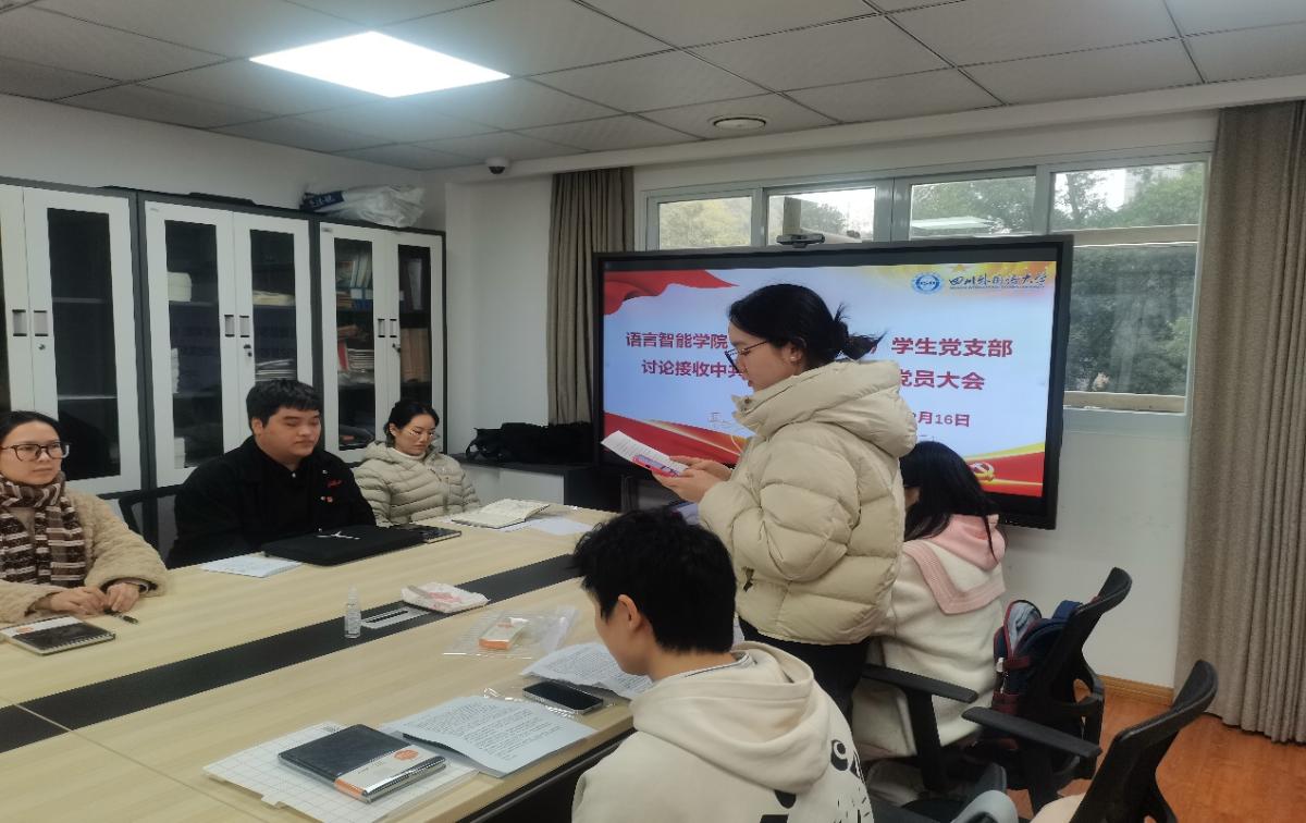 第三项,根据前期发展流程,支部组织委员陈妍代表支委会宣读了对尚晓童同志、廖宇洁同志的审查情况。从政治审查的细致把关,核查发展对象政治立场是否坚定、是否同党中央保持高度一致;到培养教育考察阶段,跟踪记录发展对象思想汇报、参加组织活动的表现,以及党内外群众的评价和意见;再到公示期间,关注反馈、确保程序透明,全方位说明尚晓童、廖宇洁2名发展对象均通过严格审查,符合党员发展条件,建议党组织接收其为预备党员,以严谨态度为发展对象入党把好每一关,确保党员队伍的先进性和纯洁性。