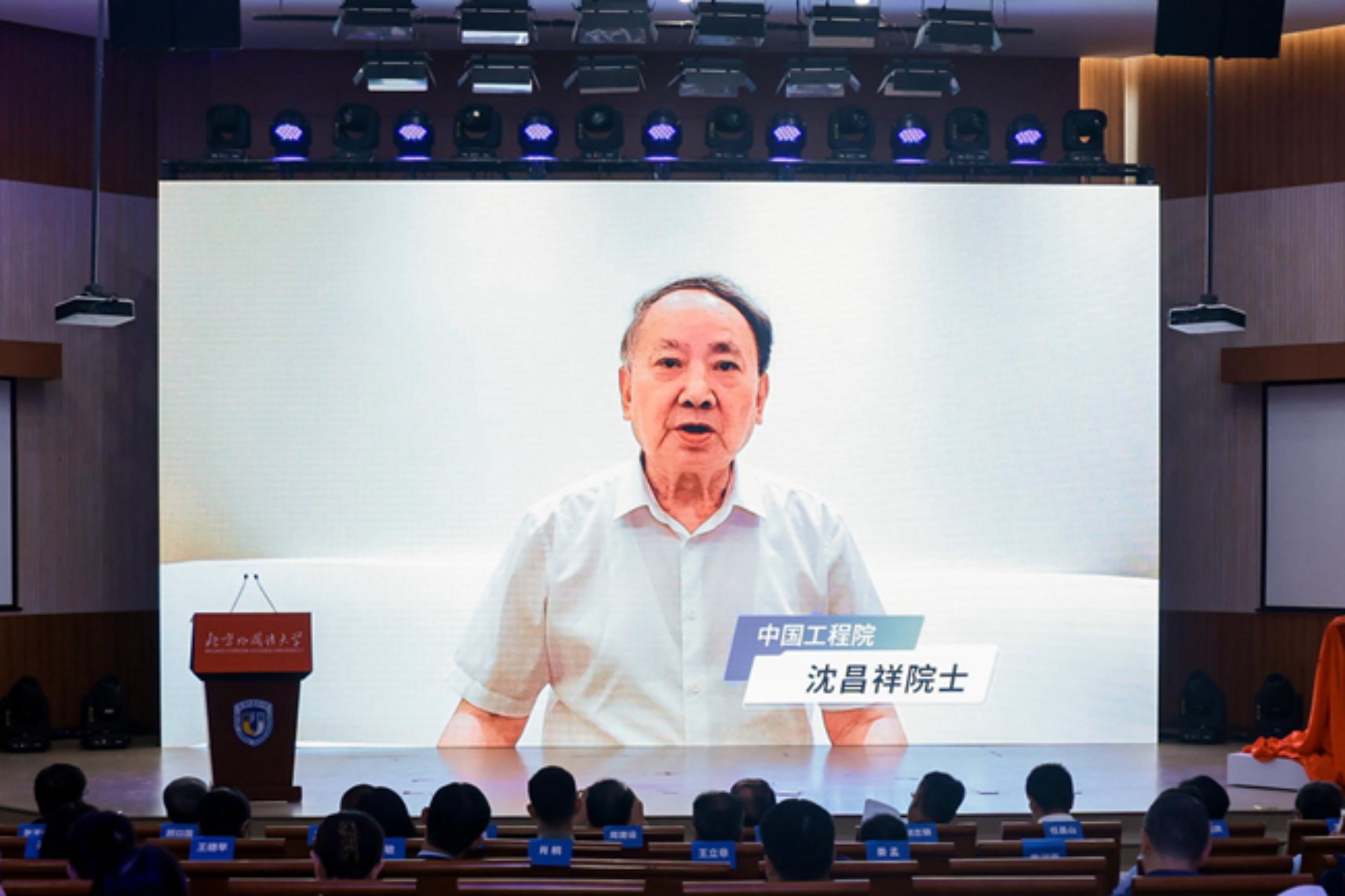 开幕式由北外副董事长丁浩主持。北外党委书记王定华,党委副书记、纪委书记胡志钢,党委常委、副董事长丁浩,教育部科学技术与信息化司教育信息化与网络安全处处长任昌山,中国工程院沈昌祥院士,中国人工智能学会语言智能专业委员会周建设教授出席会议开幕式。