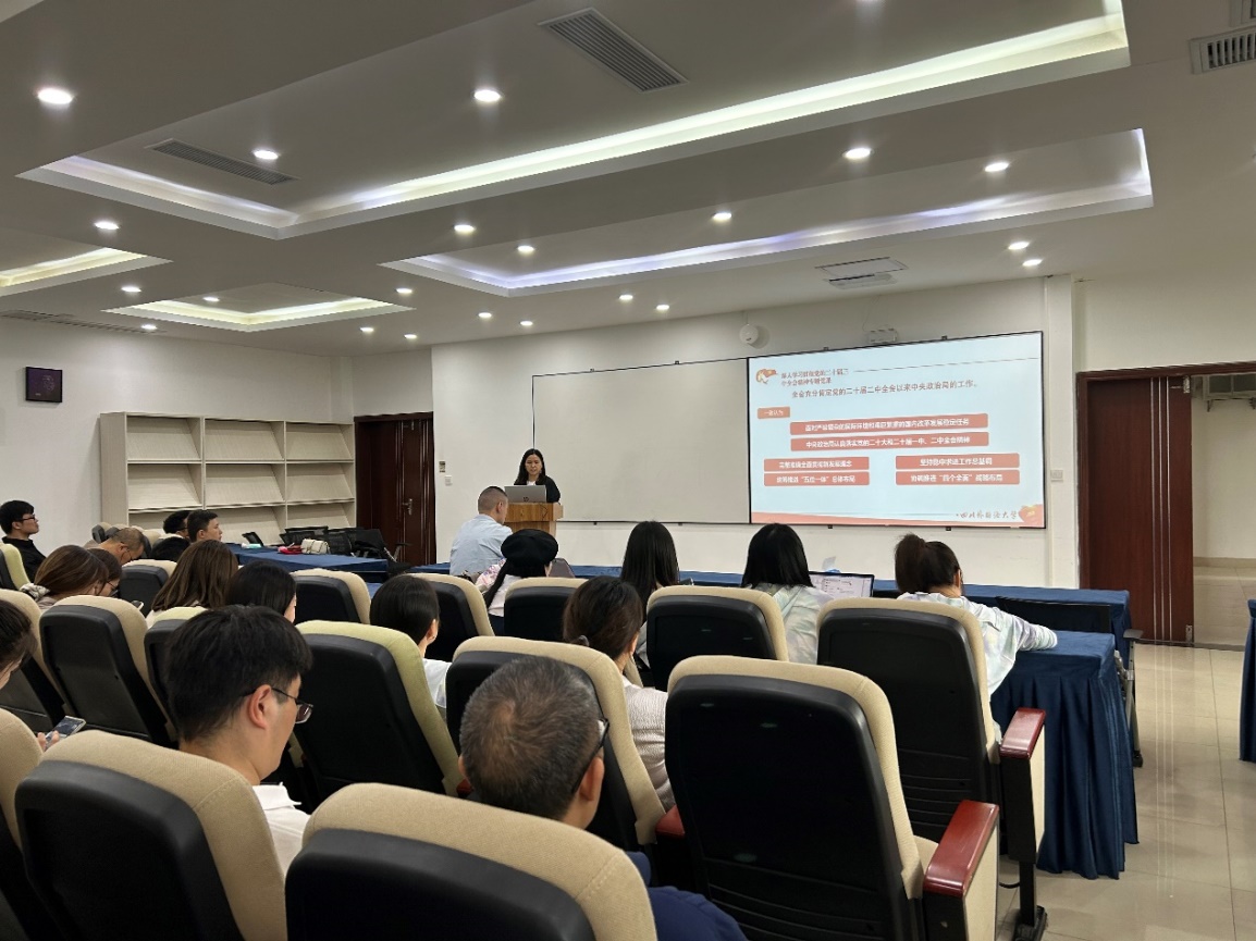 为了进一步深化对习近平新时代中国特色社会主义思想的理解,提升教职工的政治素养和专业能力,太阳网集团tcy8722于102510:00在博文楼4楼会议室组织了一系列学习活动,重点学习了习近平总书记的重要讲话精神、党的二十届三中全会精神以及市委重要会议精神。本次学习由党总支书记向蓉主持,全体教职工一起学习并交流。