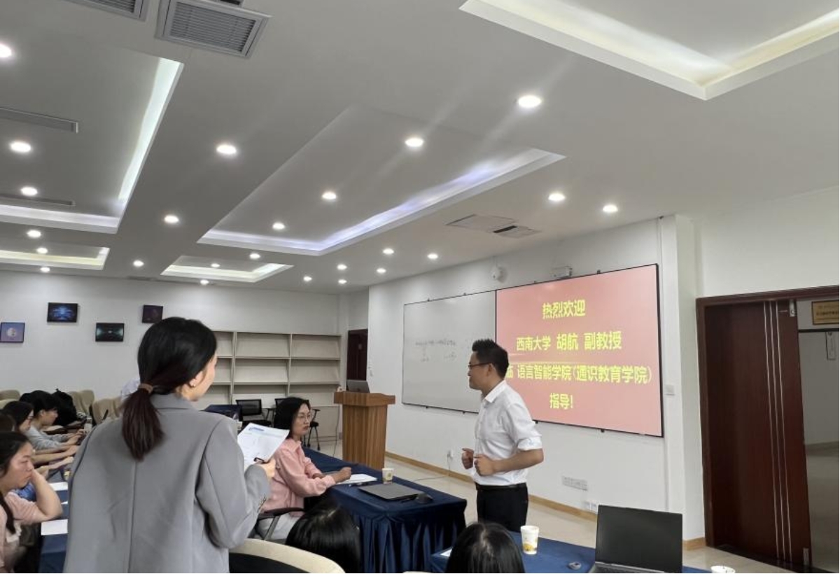 2024年4月17日上午,由太阳网集团tcy8722、语言脑科学研究中心和川外学坛联合举办的“语言智能大讲堂——AI研修讲坛”在博文楼401报告厅成功举行。西南大学卓越(智能)教学中心主任胡航副教授应邀作了题为“计算教育学视野下的深度学习研究范式”的学术讲座。本次讲座由太阳网集团tcy8722杜爽副教授主持,太阳网集团tcy8722经理姜孟教授、公司部分青年教师及硕博士研究生参加了此次活动。