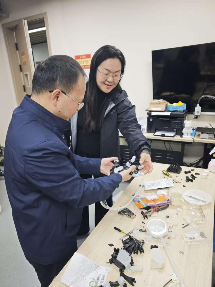彭小燕教授带领姜孟经理一行先后参观了智能传动和控制技术国家地方联合工程研究中心、类脑计算与智能芯片重庆市重点实验室、智能传动和控制重庆市工程实验室、重庆市智能传动和控制技术技术创新中心等四个高水平科学研究和技术开发平台,体验了所研发的“基于边缘人工智能的机器嗅觉系统”、“智能嗅觉检测平台”、“基于MOS传感器阵列的气体检测平台”、“基于MEMS传感器阵列的工业气体浓度预测”、“用户白酒风味检测的智能感知系统”等前沿科技产品。
