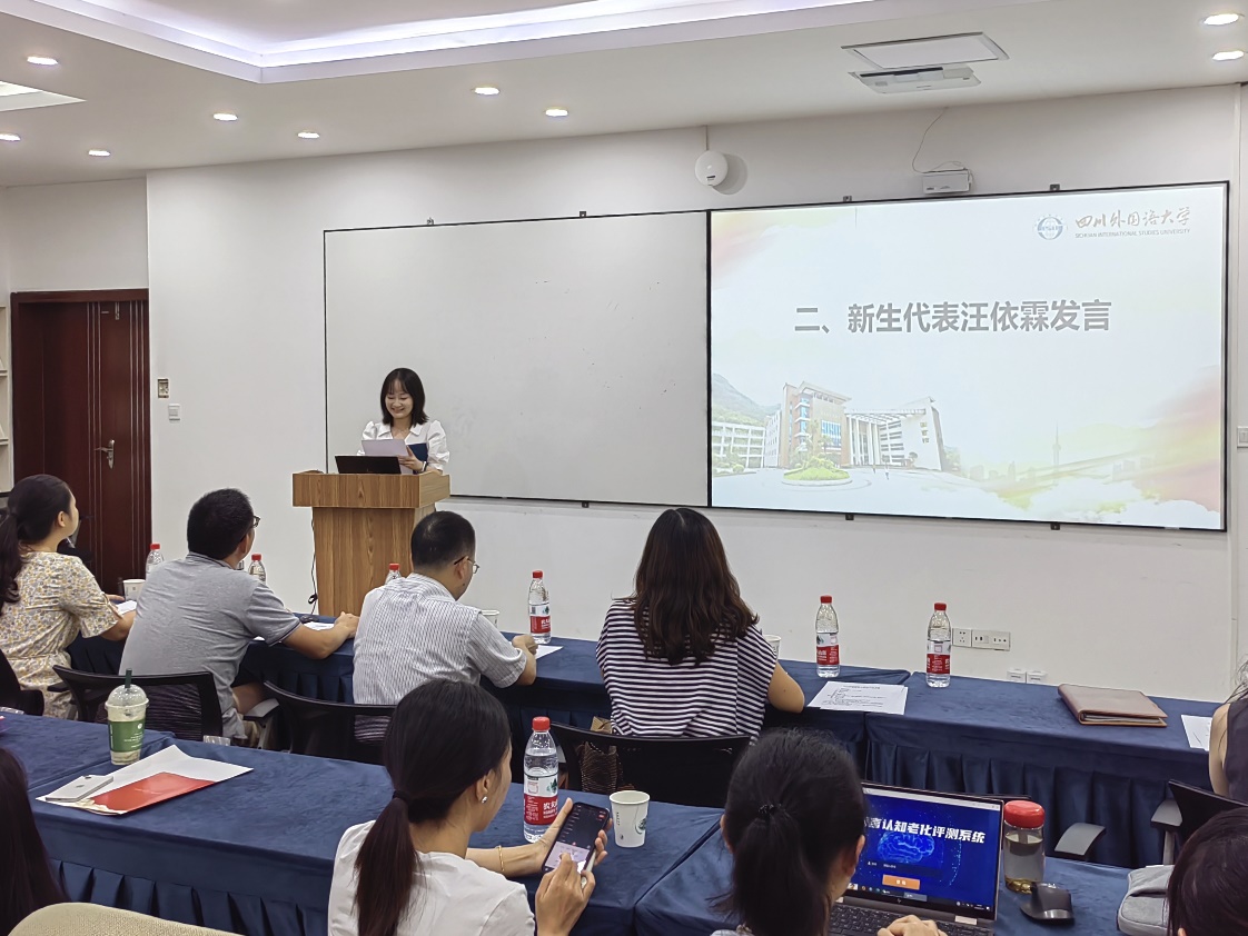 随后,新生代表汪依霖展现出对学术研究的无限热情与追求。她表示在未来的研究生阶段,分秒必争,深耕专业知识,拓宽学术视野,全面强化个人能力,以实际行动回馈师长的厚望,不负青春韶华。